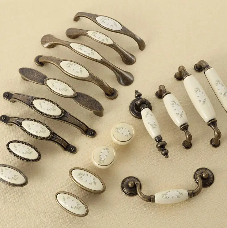 Экспресс доставка шкаф аппаратные средства древний стиль керамические ручки сад Европейский фарфор ящика двери тянуть керамика ручка