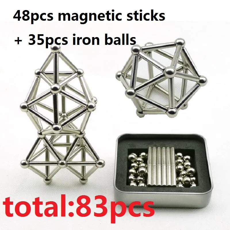 83 шт., магнитные строительные блоки, Строительный набор, 48 магнитных палочек, 35 немагнитных шариковых пазлов, штабелируемые игровые скульптуры, настольные игрушки