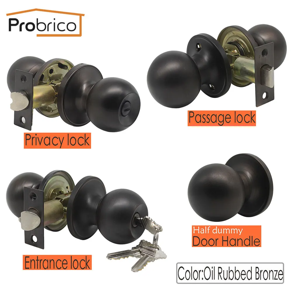 Probrico межкомнатные дверные ручки с поворотным замком, бронзовая круглая ручка, Входная/Личная/Проходная/заглушка для замка, оборудование для безопасности дверей