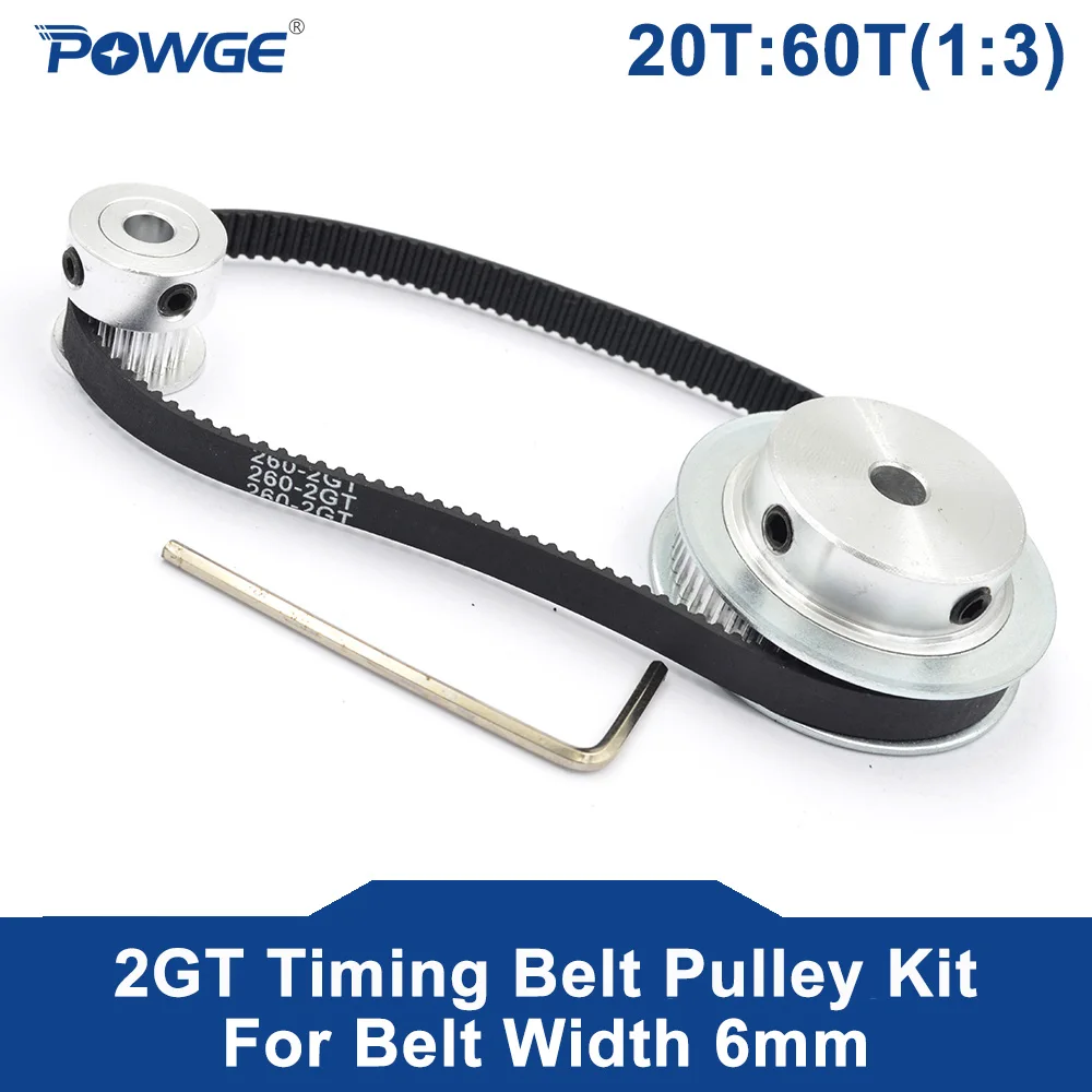 POWGE 2 M/2GT 20 зубьев 60 зубьев синхронный зубчатый шкив Диаметр отверстия 5-12 мм набор 20 T: 60T 1:3 коэффициент скорости для 260-2GT Ширина ремня 6/9 мм комплект