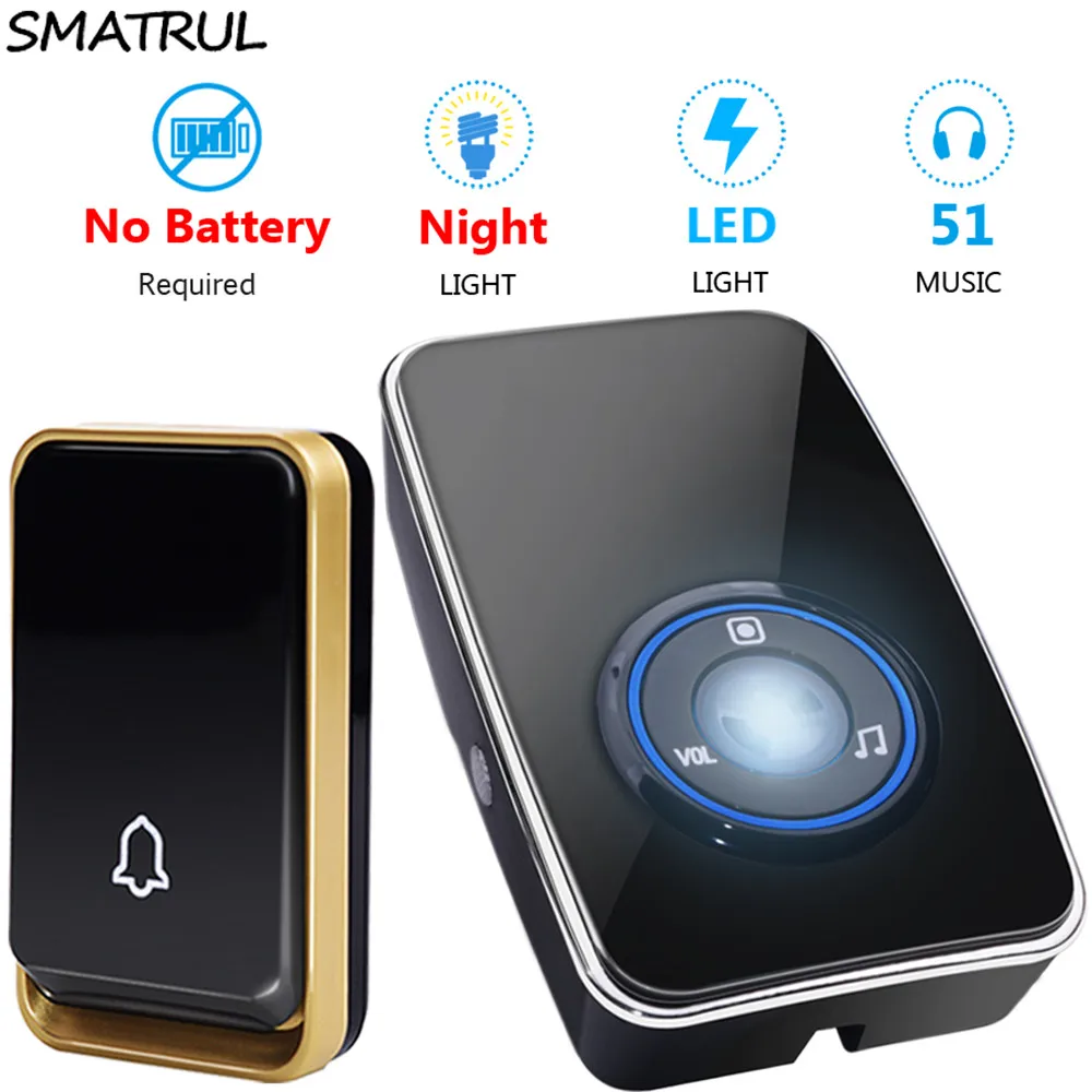 SMATRUL Беспроводной дверной звонок Великобритании ЕС США plug автономным питанием ночь датчик света Водонепроницаемый без батареи домой дверн...