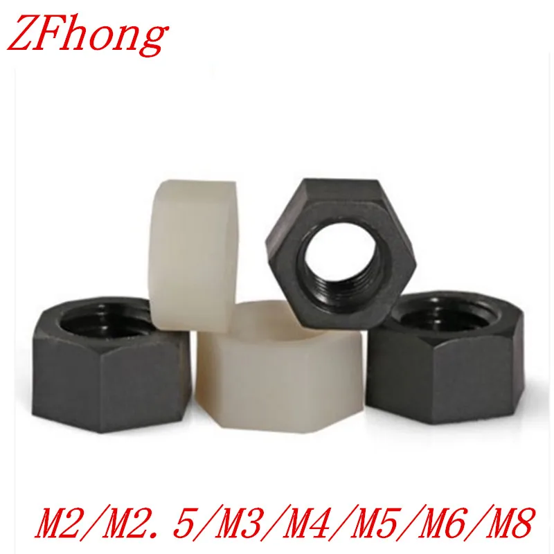 10-50 шт DIN934 M2 M2.5 M3 M4 m5 m6 m8 m10 m12 белая или черная нейлоновая пластиковая Шестигранная гайка