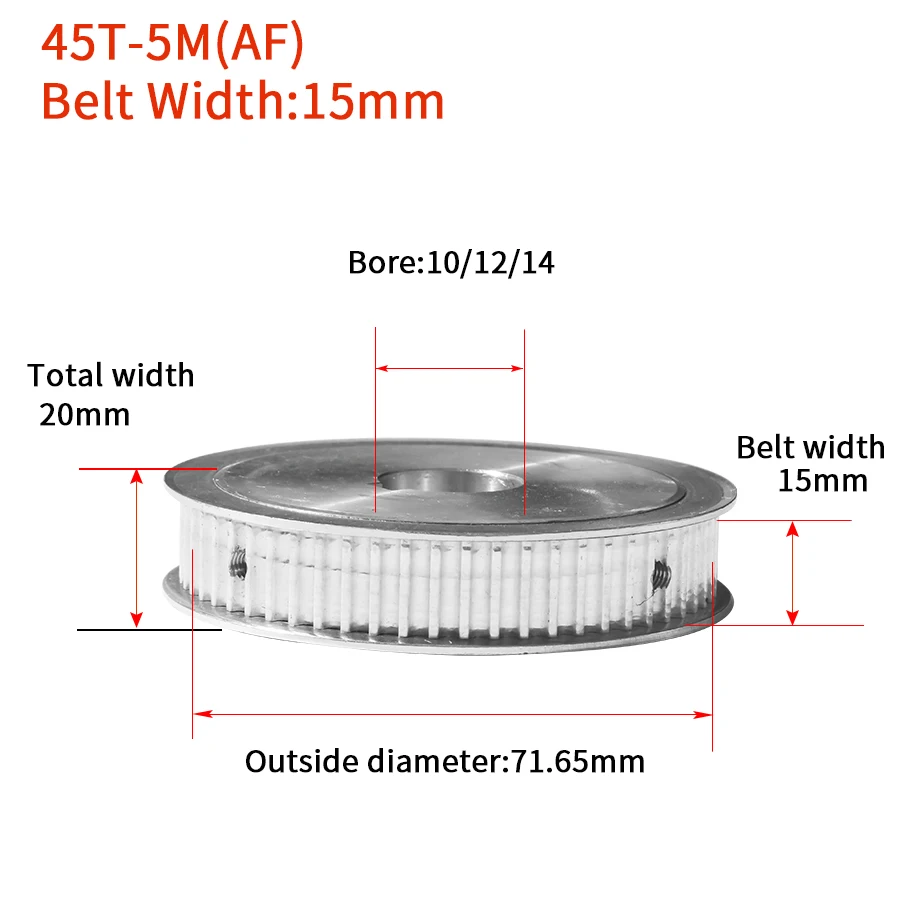 45 ЗУБОВ HTD5M синхронизирующих шкив Bore10/12/14 mmWidth = 15mm45T HTD5M Шестерни AF паз Сроки ролик диаметр паза diameter4/5 мм