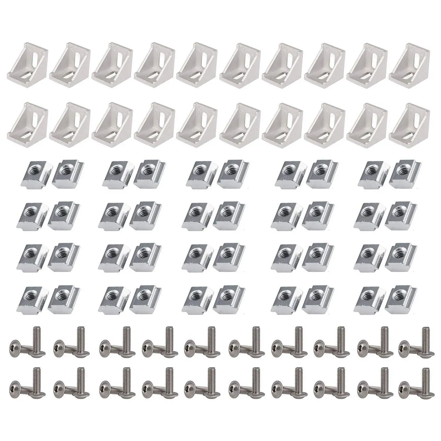 CNIM Горячая 2020 серийный алюминиевый профиль Разъем набор, 20 штук угловой кронштейн, 40 шт M5 x 10 мм орехи Т-образный паз, 40 шт. M5x10mm Hex Socke