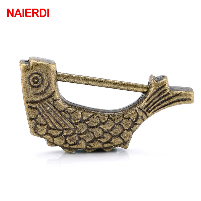 NAIERDI 60*30 мм винтажный китайский замок с ключом старинный стиль Ретро замок цинковая шкатулка для украшений, замок из сплава с рисунком рыбы домашний декор