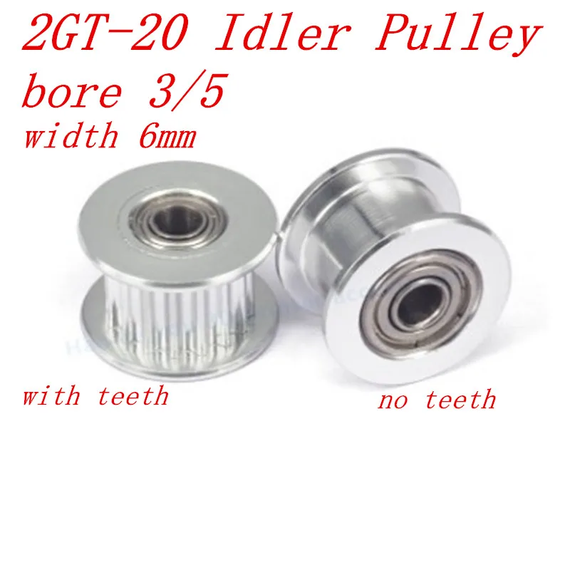 1 шт. 2GT 20 зубчатое синхронное колесо отверстие натяжного шкива 3 мм 5 мм с подшипником для GT2 ремня Ширина 6 мм 20 зубов 20 т