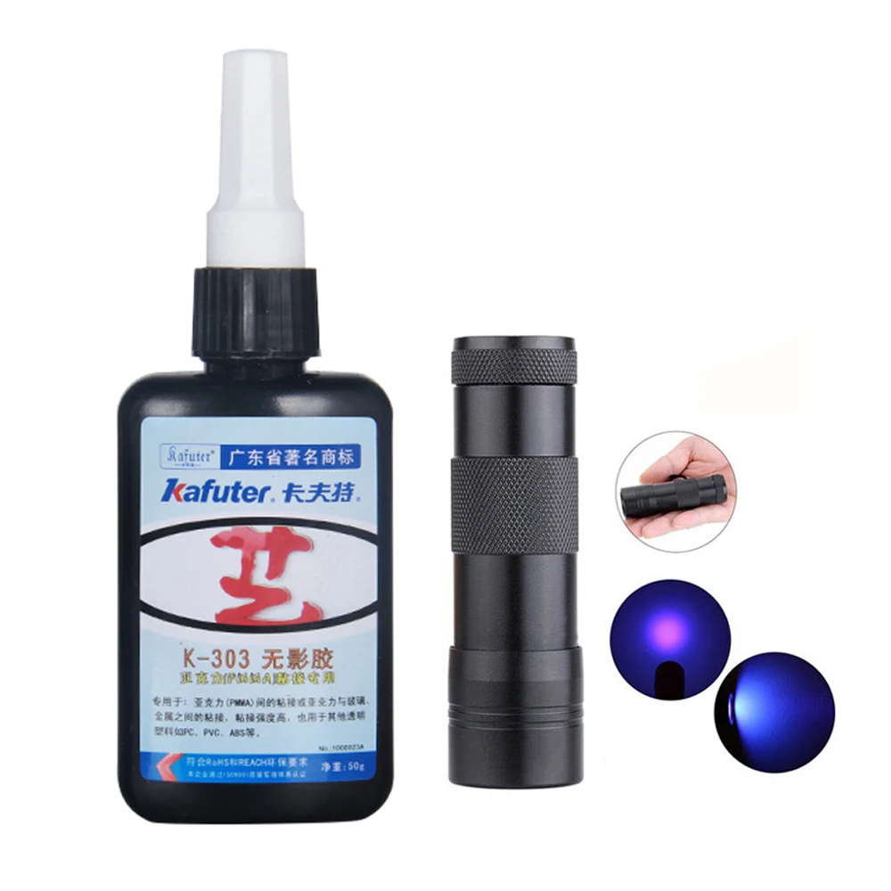 50 мл Kafuter K-303 УФ сильный клей УФ отверждения клей + светодиодный УФ фонарик УФ отверждения клей кристалл Стекло Металл склеивание клей