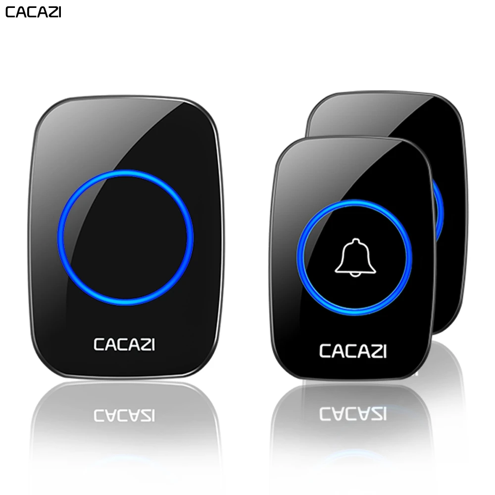 CACAZI Беспроводной интеллектуальные Водонепроницаемый дверной звонок диапазон 300 м светодиодный ночник для дома звонок США ЕС Великобритания Plug 1 2 кнопка 1 приемник