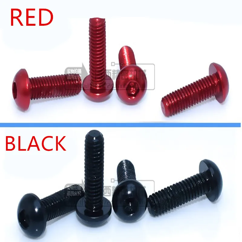 10 шт. M3 M4 * 5/6/8/10/12/16 алюминий цвет: красный или черный шестигранный полукруглые разноцветные плоские винты с шестигранной Винт