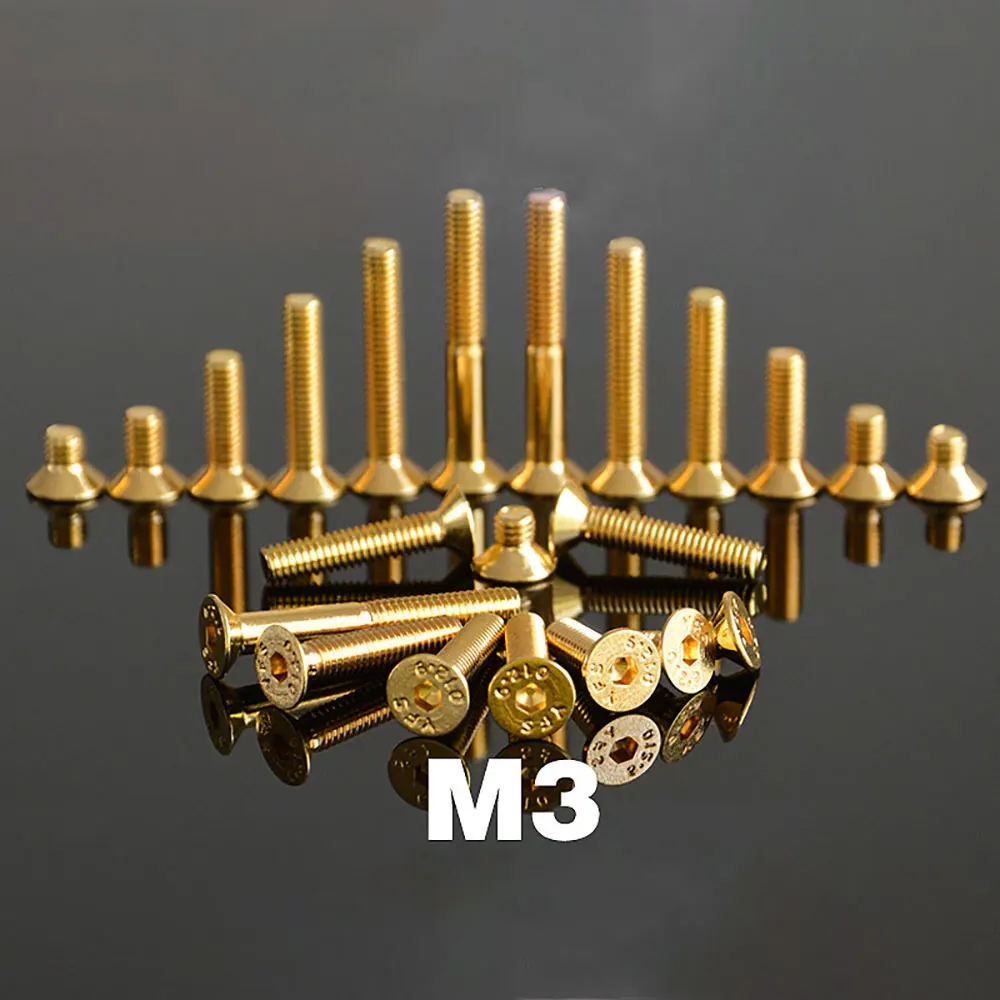 M3 Золотой 12,9 Класс сплав Сталь Шестигранная плоской головкой DIN7991 для модель автомобиля DIY Мебель крепежа
