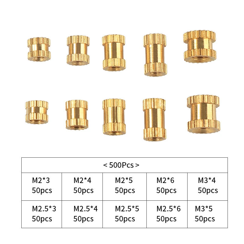 500 шт Ассорти M2/M2.5/M3 впрыска гайки латунные втулки рифленые гайки накатки нитки вставки набор гаек