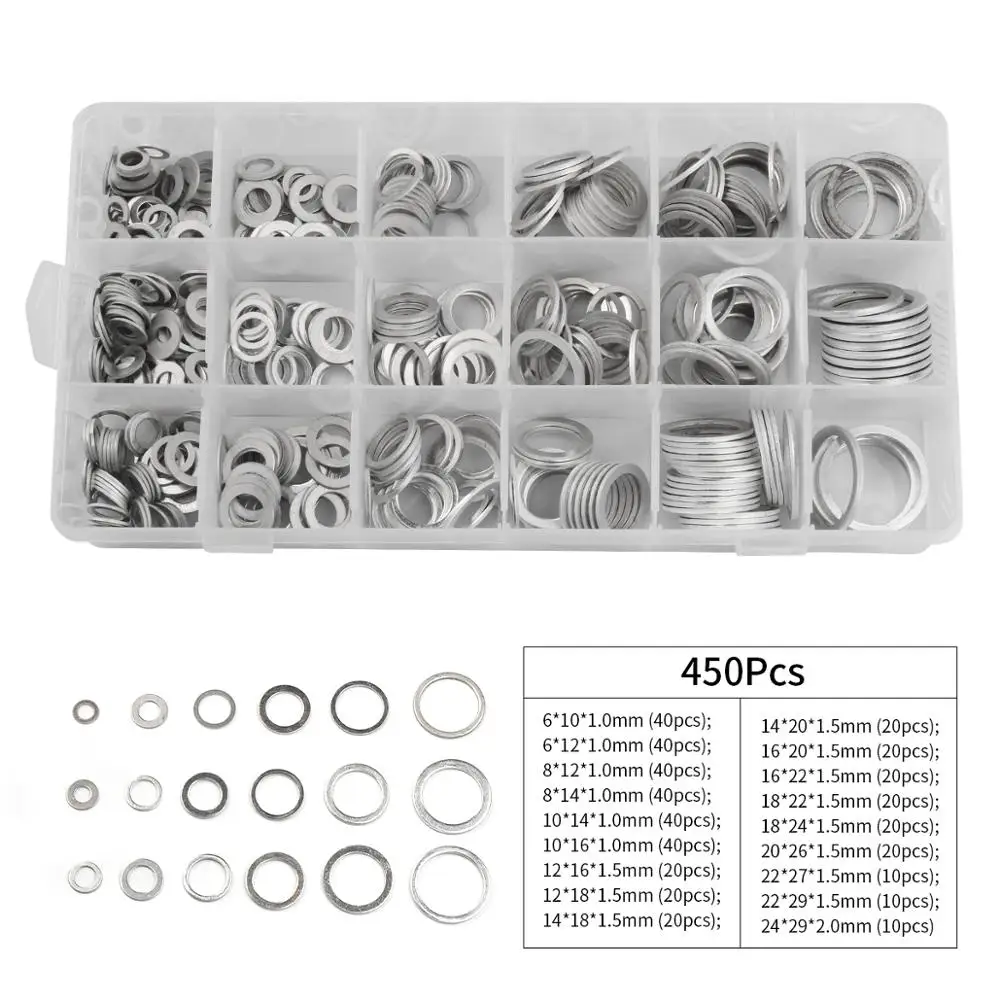 450 шт. Прокладки Шайбы прокладка алюминий плоский металлическая шайба прокладка Ассорти алюминий уплотнительные кольца комплект