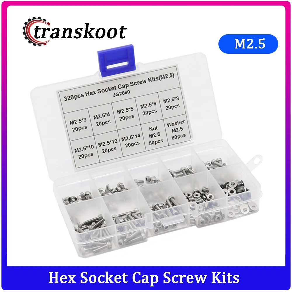 320 шт./компл. DIN912 M2.5 304 Нержавеющая сталь с шестигранной головкой Кепки винты велосипедов с шестигранной головкой Ассортимент Комплект