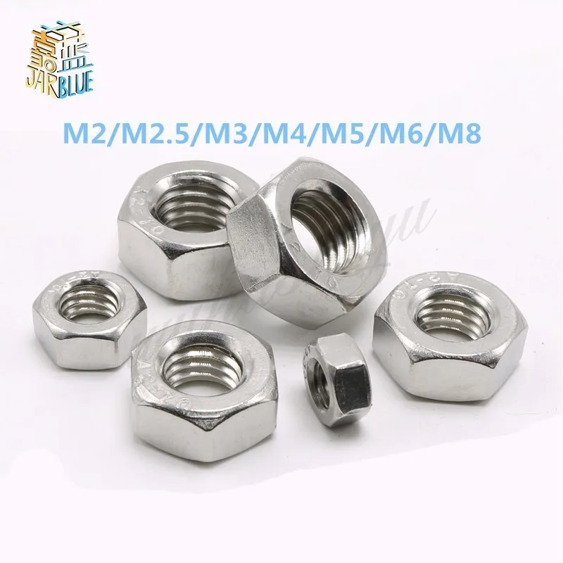 Бесплатная доставка 50 шт DIN934 M2 M2.5 M3 M4 M5 M6 M8 304 Нержавеющая сталь метрической резьбой гайка Шестигранная орехи HW009