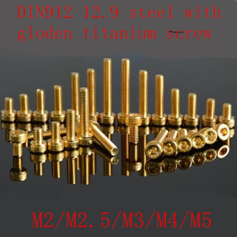10 шт. G12.9 DIN912 титановое покрытие золото шестигранный Набор торцевых головок винта M2 M2.5 M3 M4 M5 Шестигранная титановое покрытие золотистого Вин...