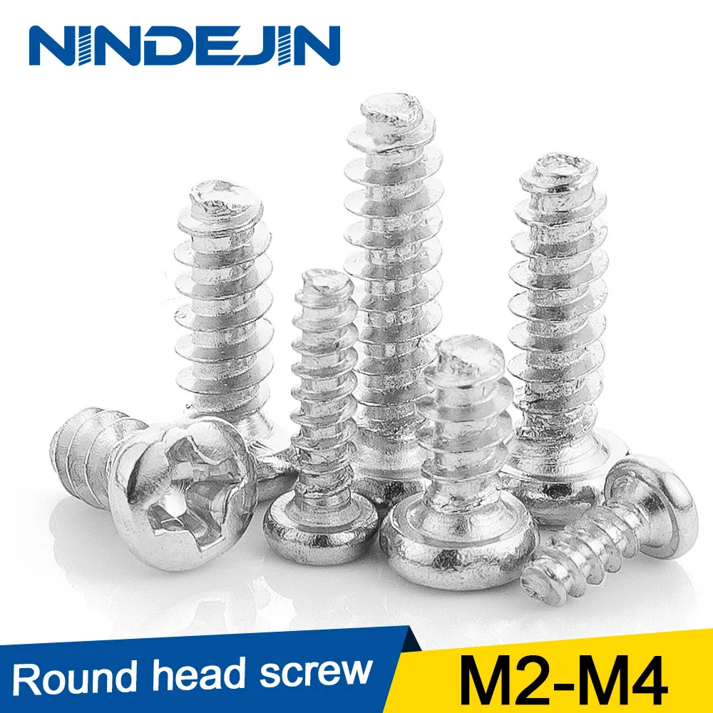 NINDEJIN 50 шт. крест Утопленный Круглый головкой саморезы 304 нержавеющая сталь M2 M2.3 M2.6 M3 M4 Phillips винт плоский хвост