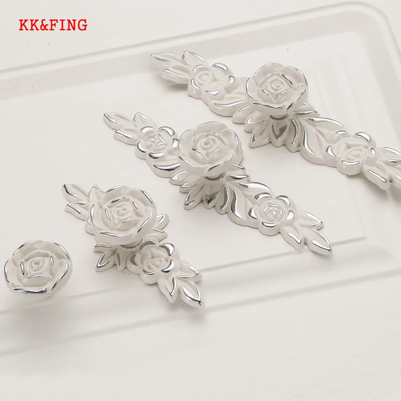 KK & FING Европейский Lvory белый цветок розы кухонный шкаф ручки шкаф дверные ручки для выдвижных ящиков мебельная фурнитура