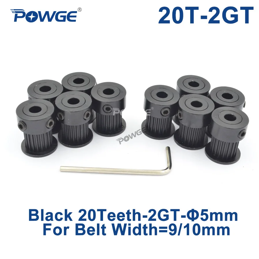 POWGE черный анодированный 20 Зубы 2 м 2GT синхронный шкив диаметр 5 мм для Ширина 9/10 мм 2MGT GT2 открытый ремень 20T 20 Зубы VORON
