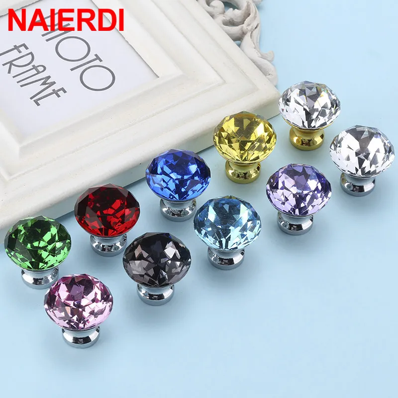 NAIERDI 30 мм Хрустальные Ручки для шкафа ручки и ручки алмазной формы кухонные ручки для шкафа ручки для ящика Мебельная ручка