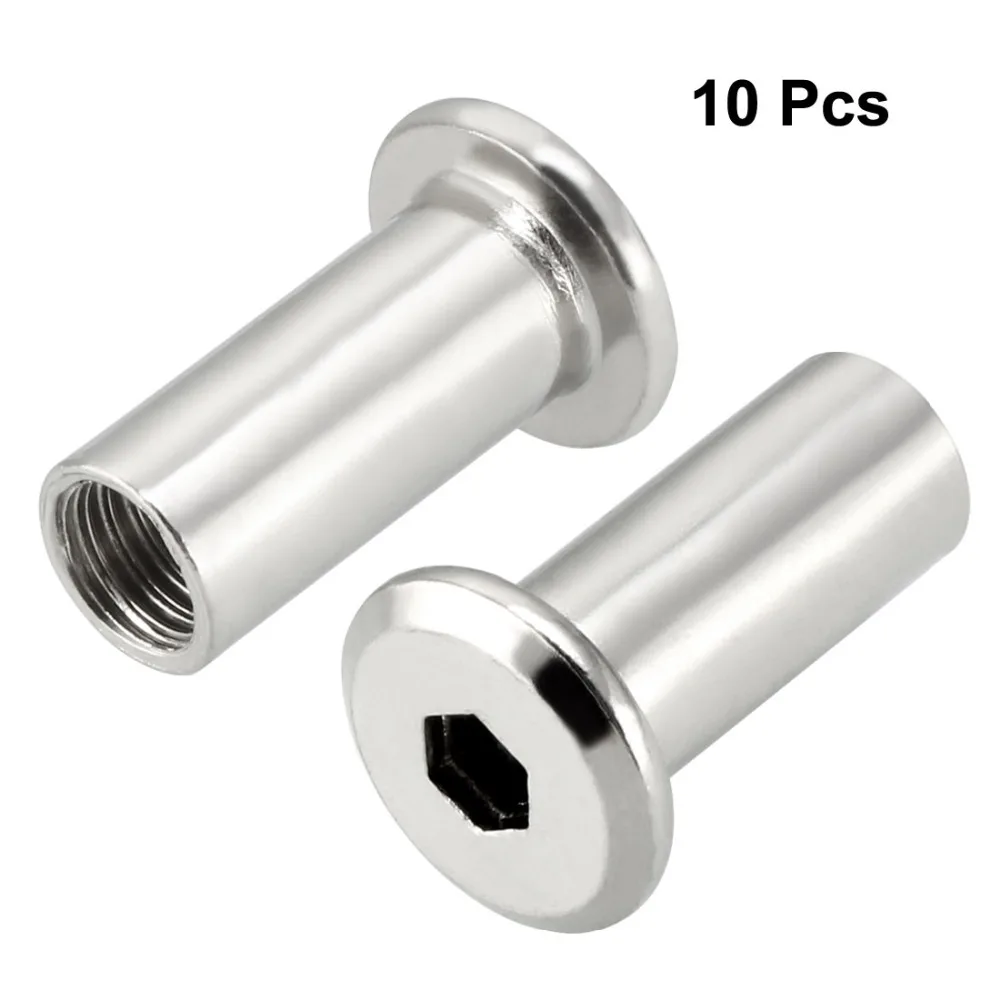 Uxcell 10 шт./лот M8x22 M8x20 M10x21 железные никелированные заклепки с шестигранной головкой, гайка, винтовой столб, мебельная фурнитура, крепеж