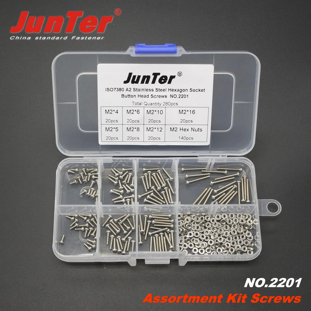 280 шт. M2 (2 мм) A2 Нержавеющая сталь ISO7380 с полукруглой головкой болты с шестигранной головкой Винты с шестигранной головкой с набор болтов в ас...