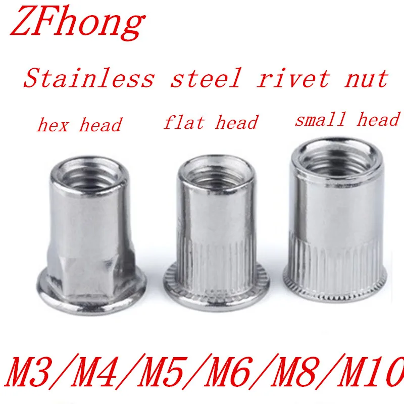 5-20 шт M3 M4 M5 M6 M8 m10 из нержавеющей стали 304 гайка с заклепками, плоская головка/маленькая головка/полушестигранная заклепочная гайка
