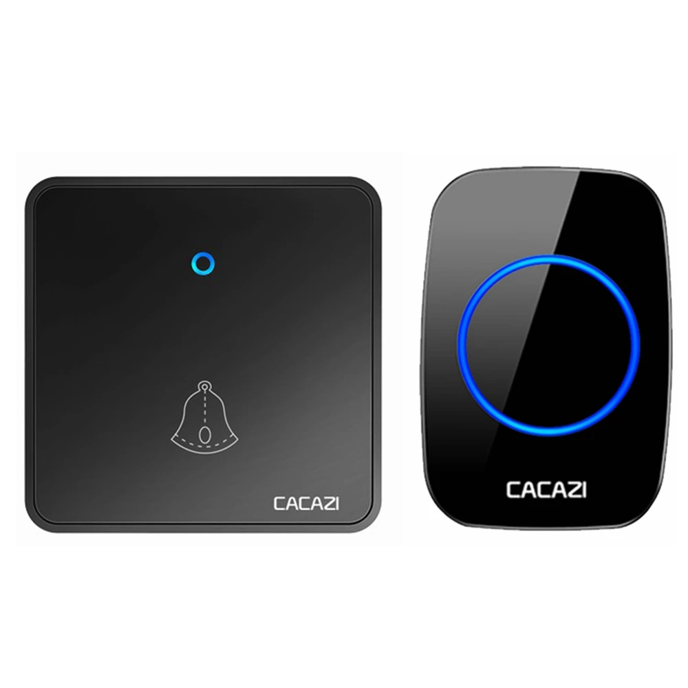 Беспроводной дверной звонок CACAZI, водонепроницаемый, 300 м, пульт дистанционного управления, 60 колонок, CR2032, передатчик батареи, ночник, приемник, США, ЕС, Великобритания