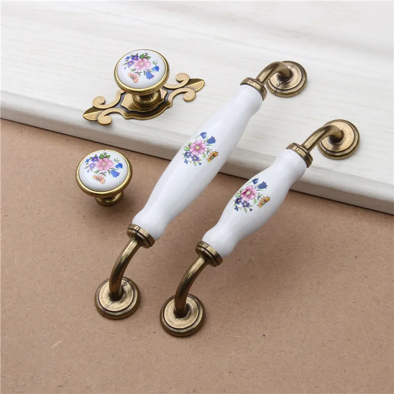 Антикварные Бронзовые керамические ручки для шкафов из цинкового сплава, ручки для ящиков шкафа, Европейский цветочный узор, мебельная дверная ручка для шкафа