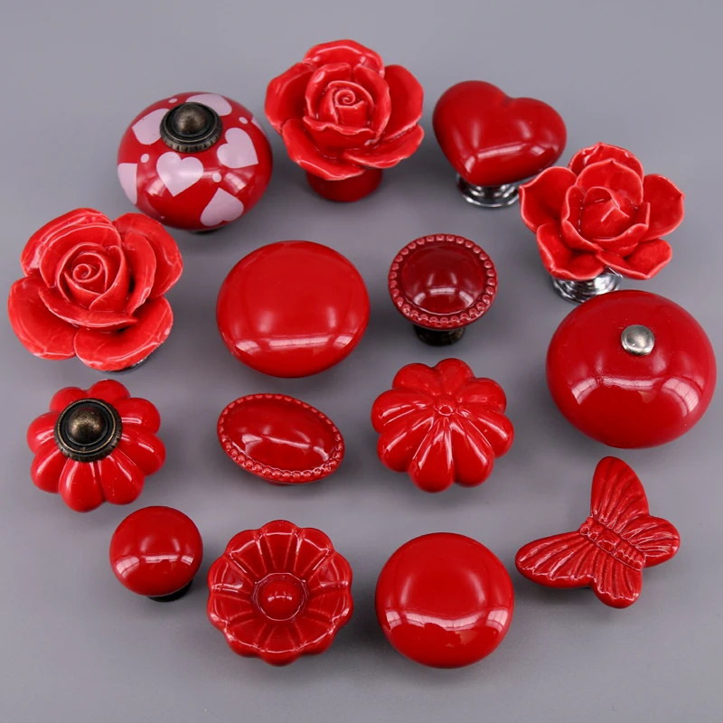 1х европейский дизайн милые керамические ручки и ручки дверный шкаф ящик кухонная ручка красная ручная ручка для детской мебели