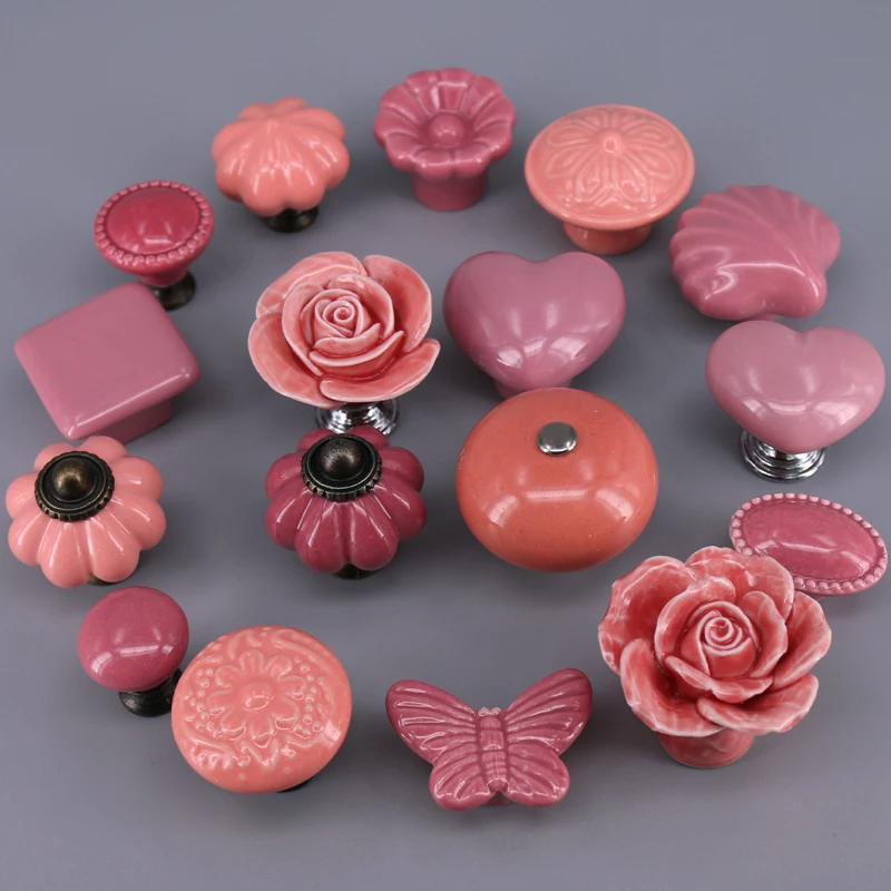 1xPink цвет серии Керамические, шкаф дверные ручки шкафа ручки для ящиков девушка комната Pull ручка креативный дизайн мебельное оборудование