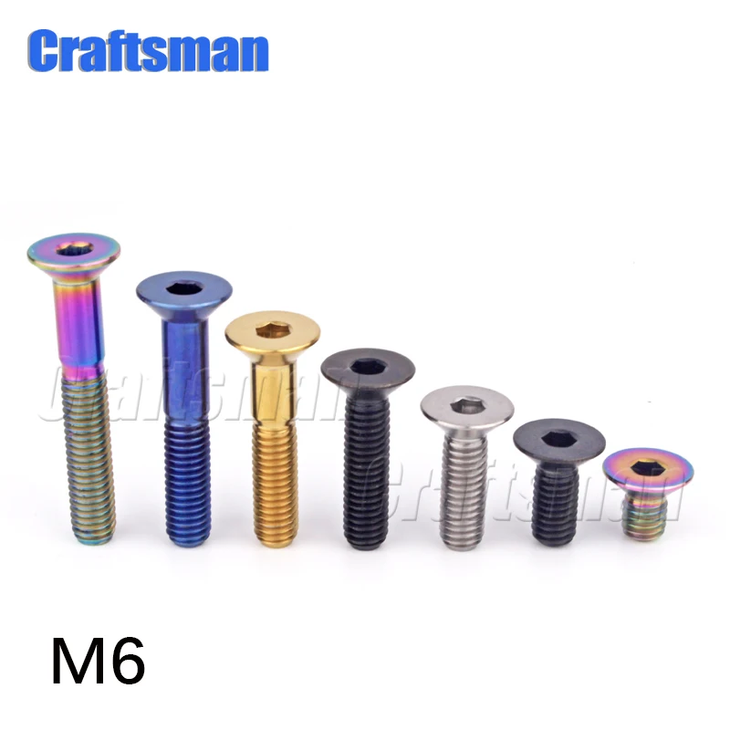 Титан Ti M5 X 12 16, M6 X 10 15 20 25 30 35 мм Шестигранный Ключ Телевизор с потайной головкой тормоза дисковой винт Титан болт для велосипеда, автомобиля
