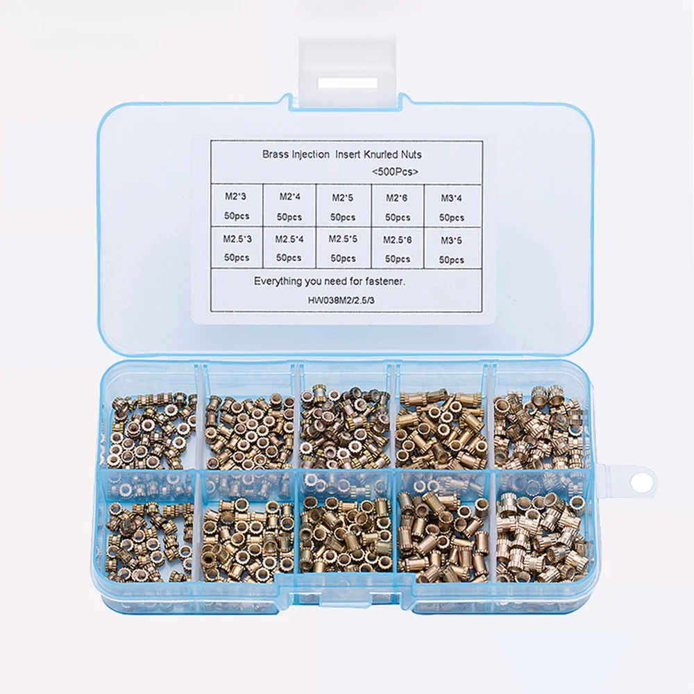 200/500 шт M2 * L-3.5 M2.5 * L-3.5 M3 * L-4.2(OD) инжекционная гайка медная вставка накатанные гайки набор накатки для электрических HW038