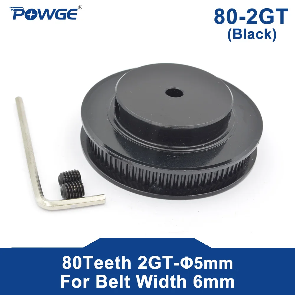 POWGE черный анодированный 80 зубьев 2 м 2GT синхронный шкив диаметр 5 мм для ширины 6 мм 2MGT зубчатый ремень GT2 шкив ремень 80 зубьев 80 т