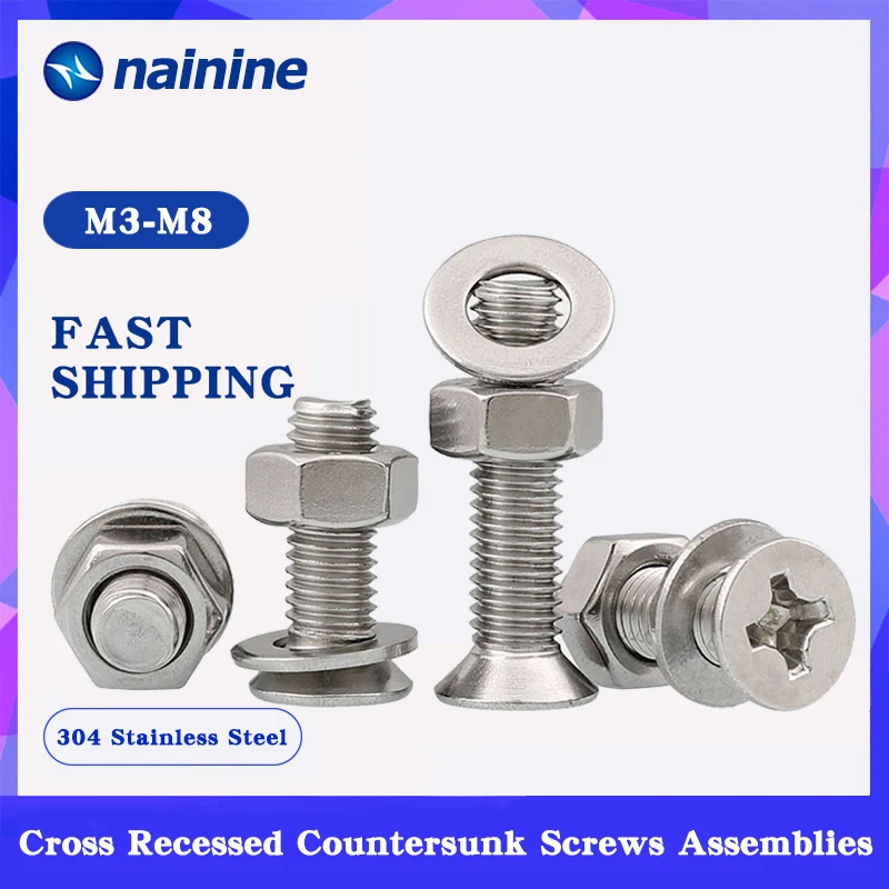 10/20 шт. M3-M6 GB819 304 Нержавеющая сталь саморезные винты с потайной головкой и крестообразным шлицем шестигранные гайки и плоские шайбы сборки HW341
