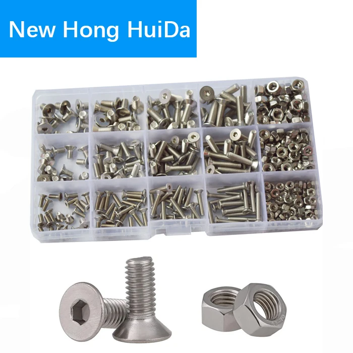 M2 M3 M4 M5 M6 Шестигранная розетка с плоской головкой винт Метрическая резьба потайная Шестигранная набор ассортимента болтов 304 нержавеющая сталь