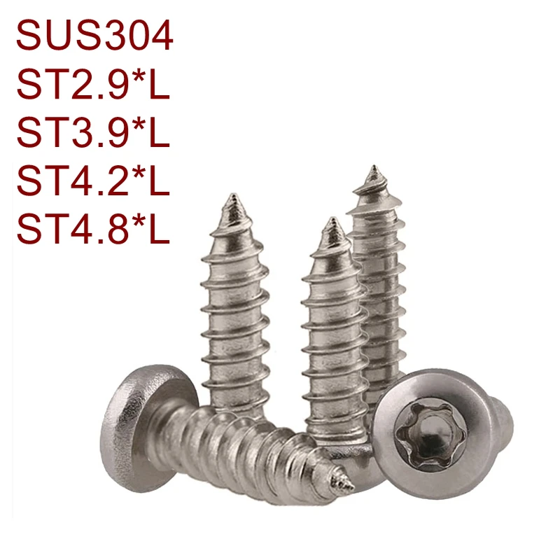 100 шт./лот ST2.9 ST3.9 ST4.2 ST4.8 * L Нержавеющая сталь шесть лепестков круглая голова саморез, SUS 304 винт torx Безопасности Винт