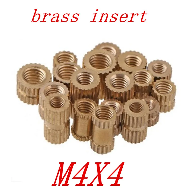 100 шт./лот вставкой из латуни M4 * 4 od = 4.2 через нить гайки латунные вставки/гайки с накаткой для литья под давлением