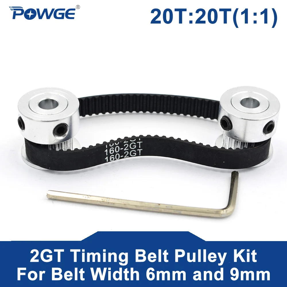 POWGE 2 M/2GT 20 зубчатый синхронный зубчатый шкив Диаметр отверстия 4/5/6/6. 35/8 мм набор 1:1 20 T: 20T соотношение скорости для 160-2GT Ширина ремня 6/9 мм комплект