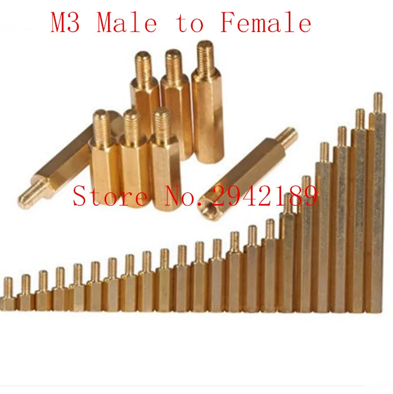 100 шт./лот M3 * L + 6 3 мм латунь противостояние Spacer мужской женский интервал винты Hex латунь каскадный Spacer длина 3 мм до 30 мм