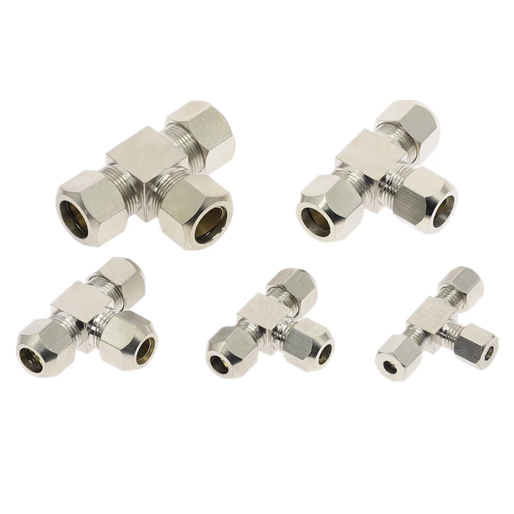 Пневматические фитинги латунный Т Тип 4 6 8 10 12 мм OD трубки сжатия наконечник трубки Компрессионный фитинг разъем PE