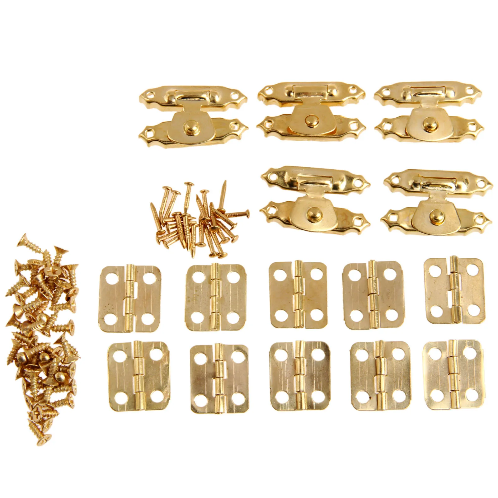 15 шт./компл. Винтаж Золотые круглые дверные петли железная декоративная + античная защелка фиксаторами шкатулка для драгоценностей рычажны...