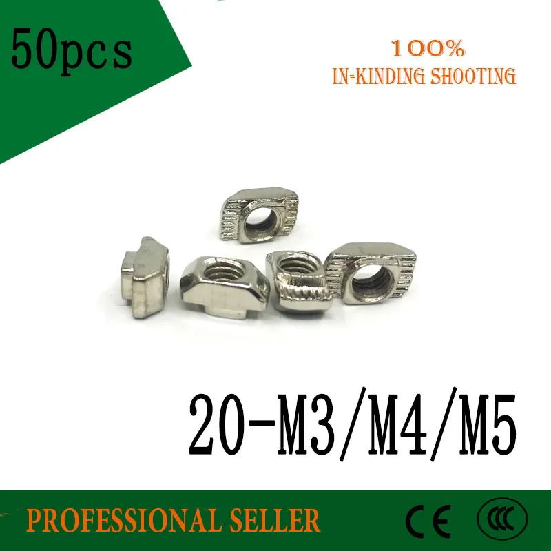 50 шт. 20-m3 M4 M5 t-гайка молота гайка 3D-принтеры Запчасти Никель покрытием для 20 серии T для щелей 6 20TN 2020