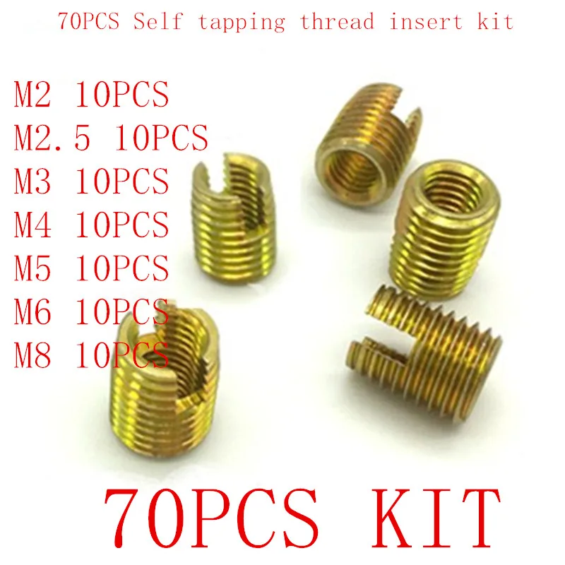 70 шт. сталь с цинком саморезные резьбы комплект вставок, M2 m2.5 M3 M4 M5 M6 M8 спиральная вставка саморезы шлицевой винт