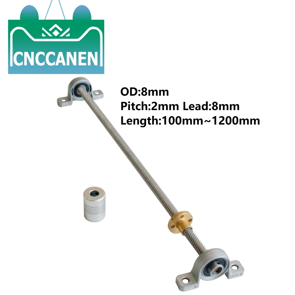 T8 свинцовый винт 100 мм-1200 мм Шаг 2 мм свинцовый 8 мм с гайкой & KP08 подшипниковый кронштейн и 5*8 мм гибкая муфта детали 3D принтера