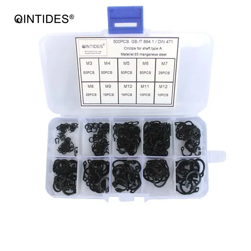 Qinstindes 300 шт M3-M12 стопорные кольца для вала Ассорти набор 65 марганцевая сталь стопорное кольцо 304 нержавеющая сталь стопорное кольцо