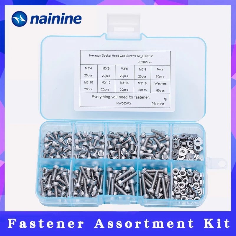 320 шт./компл. DIN912 M2 M2.5 M3 304 Нержавеющая сталь с шестигранной головкой Кепки винты велосипедов с шестигранной головкой Ассортимент Комплект ...