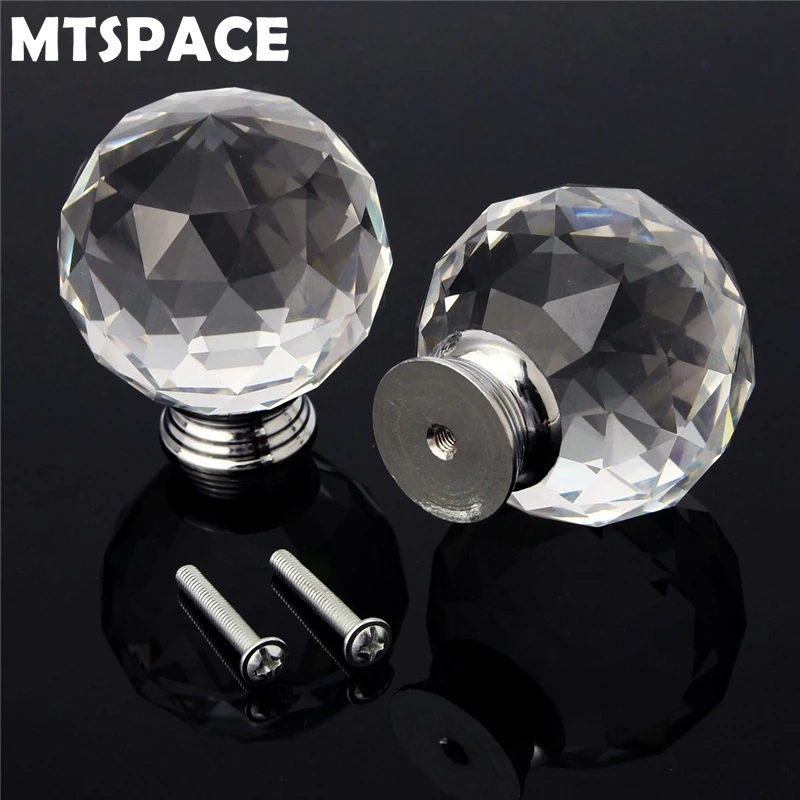 Mtspace 1 шт. 30 мм 50 мм сферические прозрачного хрусталя стеклянные дверные ручки Фурнитура для шкафа, для ящика ручка кристалл Стекло + цинковый...