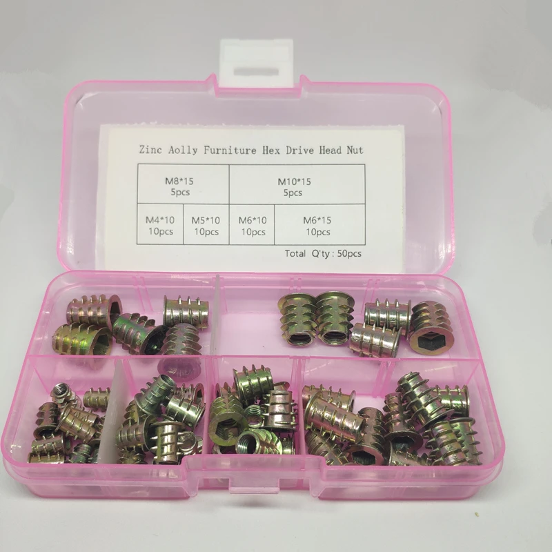 50 шт./компл. резьбовые вкладыши для деревянный цинковый сплав резьба по дереву вставка для болтов и гаек-в Тип шестигранный привод гайки M4/M5/M6/M8/M10