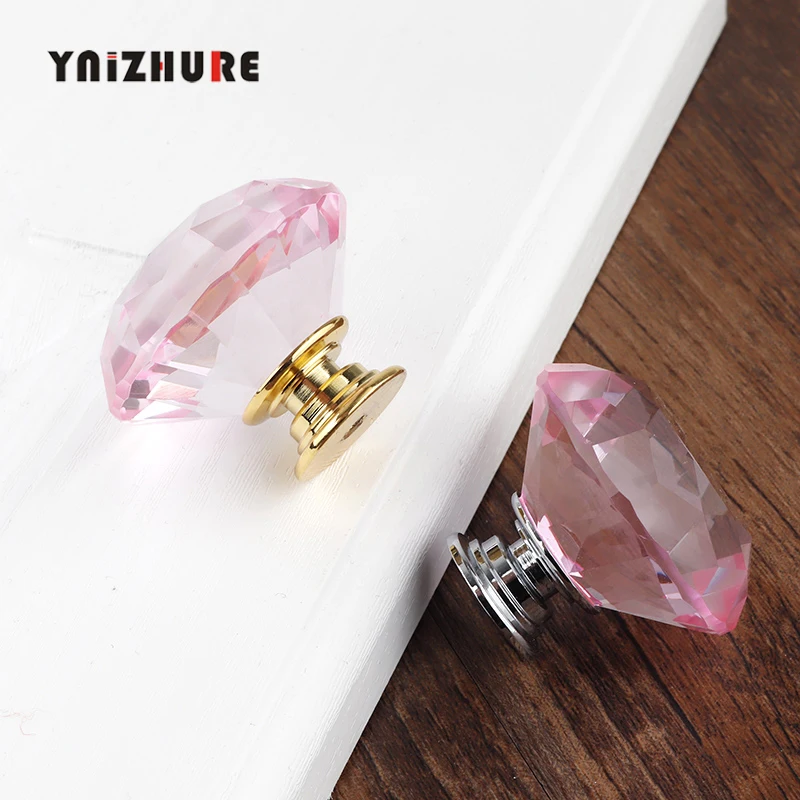 Новинка 2019 года 40 мм Diamond форма розовый Кристалл Стекло Ручки Шкаф Тянет ящика Ручка Кухня Шкаф для ювелирных изделий 1 шт