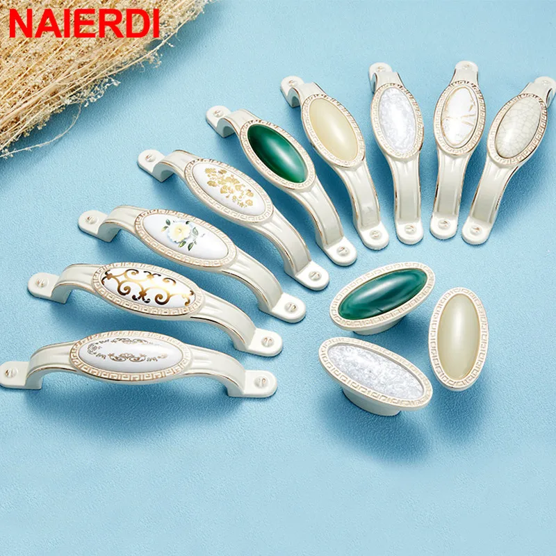 NAIERDI цвета слоновой кости белый керамические ручки для шкафов ящика цинковые ручки сплав шкаф нажимные дверные ручки Европейская Мебельная ручка